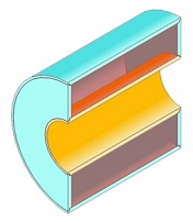 Given: Cut-away and Outline drawings of a housing to contain a single solenoid type coil are shown below. The housing overall length, outer diameter and inner diameter are defined by the customer as per their requirements. All housing parts are to be non-magnetic. The I.D. sleeve shall be non-conductive (phenolic). The housing cylinder and end plates shall be aluminum to facilitate heat transfer from the coils to the surrounding air space. Objective: To wind a coil in the available (shaded) volume that will yield a 200 +/- 5% gauss peak field while drawing 1.0 amp of D.C. current. The power requirement shall not exceed 10 watts. |